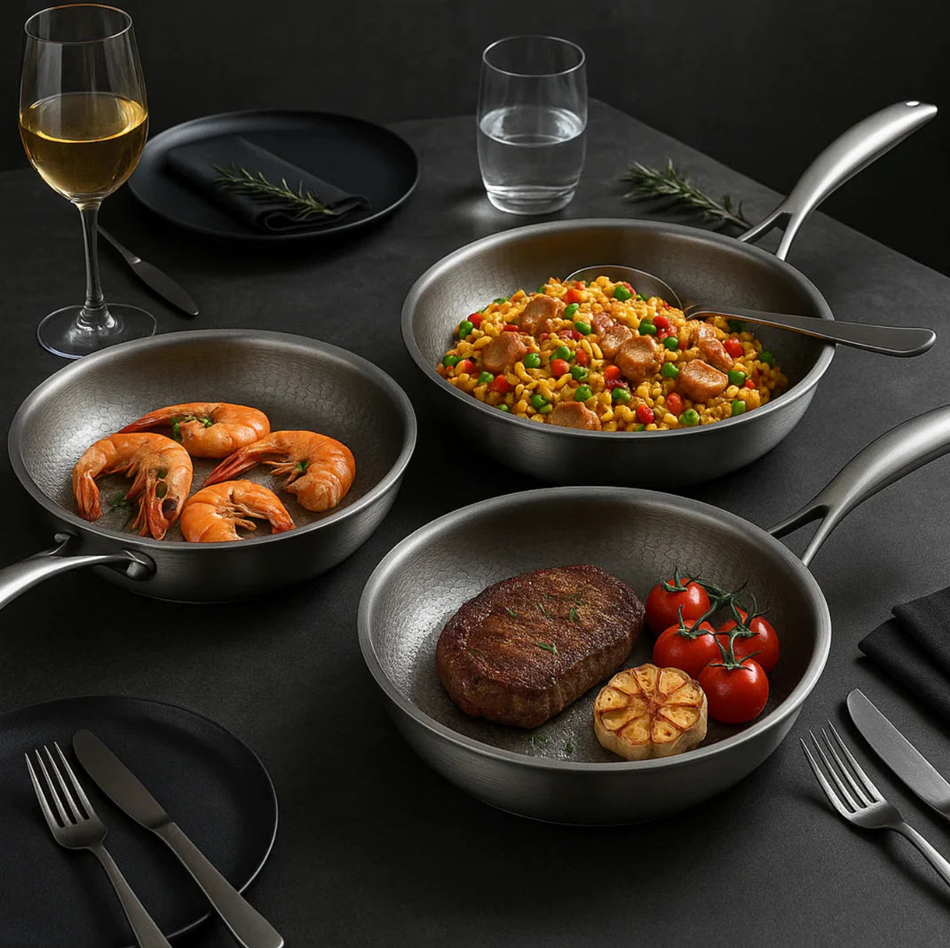 Uppgötvaðu byltingarkenndan títanmatarílát sem skilar meiri frammistöðu en hefðbundnar non-stick og ryðfríar pönnur. Með náttúrulegri non-stick yfirborði og eiturlausri samsetningu gerir Titan Nord örugga og heilbrigða matreiðslu án skaðlegra húðana.